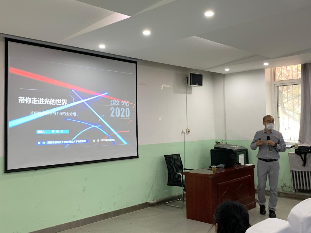 齐新元博士从“光电信息科学与工程专业简介”、“光电信息科学与工程专业能学到什么”、“光电信息科学与工程方向发展历程”、“光电信息科学与工程方向就业去向和要求”以及“我们该如何规划自己的大学四年时光”等五个方面给大家深入浅出地介绍了光电信息科学与工程专业的发展背景以及学术前沿问题。同时,齐新元博士给我们详细介绍了西北大学光电信息科学与工程专业的发展概况和专业方向,并鼓励员工们报考西北大学光学专业和光学工程专业硕士研究生。