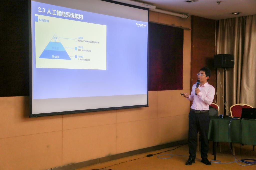 本次培训以理论+实战课程为主,共为期两天,主讲人为来自星环信息科技有限公司的大数据AI架构师孙国库。第一天,孙国库老师为大家介绍了大赛流程、规则,然后对大数据和人工智能技术进行了深入浅出的讲解,并通过一个金融领域的实际案例,展示了人工智能技术是如何应用于实际中。第二天,孙国库老师带着大家进行了人工智能产品“Sophon”平台的安装部署,以及人工智能技术的上机实操。